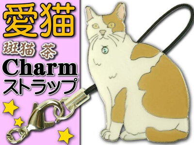 送料無料 斑猫 茶 愛猫ストラップ金属チャーム Ad103