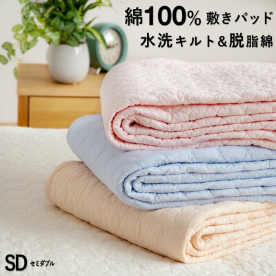【期間限定!59%OFF】敷きパッド セミダブル 綿100% 水洗いキルト 詰め物に脱脂綿を使用 春・夏・秋用 敷きパット 水洗いした天然素材 敷パッド ウォッシュキルト 裏面も使えるリバーシブル 敷パット ベッドパッド イブル
