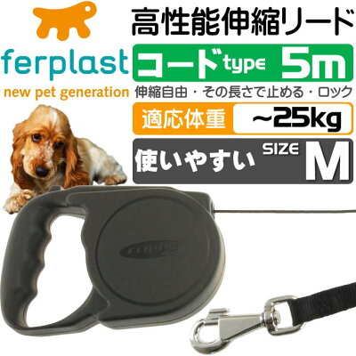 送料無料 犬猫用伸縮リードフリッピーM黒 コード長5m ロック機能付 丈夫ペット用品リード お散歩にペット用品リード 使いやすいリード Fa5083