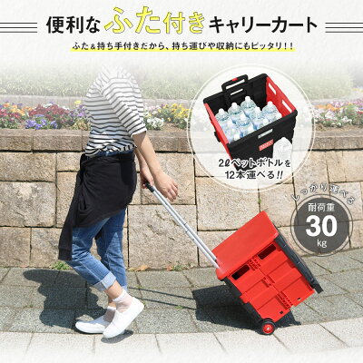 キャリーカート 折りたたみ 軽量 台車 フタ付 コンパクトキャリーカート 2輪キャスター付 コンテナカート 折り畳み台車 アウトドア 荷物運び 折りたたみ 買い物カゴ 運搬 ふた付キャリーカート 折り畳みボックス キャリーボックス アウトドア あす楽対応