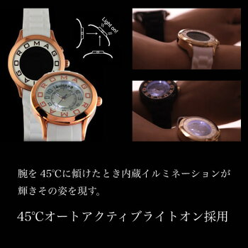 通常、文字盤は鏡のようになっていて、時間を見る角度(約45°)に文字盤を傾けた時、内臓の イルミネーションが輝きだすという、二つの顔を持つミラーウオッチ。