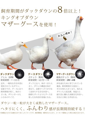 商品 西川 マザーグース 羽毛布団 サイズ シングル 150cm(幅)×210cm(長さ) 素材 生 地:綿100%(超長綿60サテン生地) 中 綿:ダウン93% フェザー7%(吉林省産ホワイトマザーグースダウン/420dp) 充てん量:1.1kg 備考 ※モニターの発色や写真の写り具合によって実際の物と色が多少異なる場合がございます。