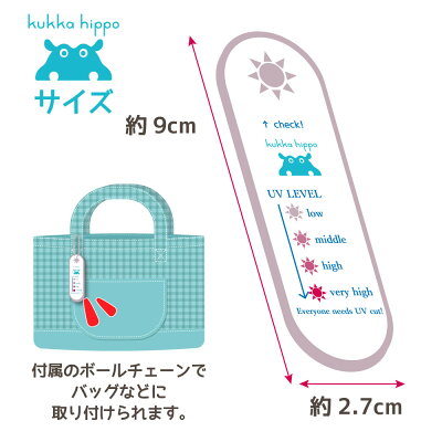 ボールチェーンでバッグやランドセルに付けてもOK! Detail 商 品 詳 細 紫外線をキャッチすると色の変化でお知らせする、【kukka hippo】UVチェッカーです。