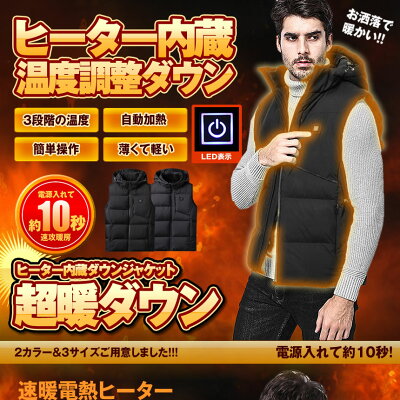 ヒーター 内蔵 ダウンベスト ベスト L XL 2XLサイズ 暖房 ベスト 男性 女性 3段階 温度調整 USB 加熱 ブラック ネイビー グレー tecc-danbest04 [送料無料・一部地域除く]