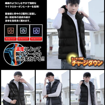 【速暖材料】 電源入れて約10秒! マイクロカートンファイバーで熱伝導が実現です 【スイッチ】 電源のON/OFFはボタンで一つ!強・中・弱の温度設定は電源の色で簡単にわかる! 【豊富なサイズ】 様々な場面で活躍! LサイズからXXLサイズまで 幅広いサイズ展開で、幅広い体型の方に対応。