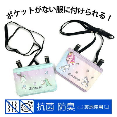 移動ポケット 女の子 [wqt-531] pop parlor ポップパーラー グラデキャラシリーズ フラットショルダー ヨコ型 移動ポケット 斜めがけ ミニポケット ポケットポーチ ポシェット おしゃれ 可愛い 恐竜 ダイナソー ユニコーン キッズ 女の子 女児 女子 小学生 幼児 抗菌 防臭